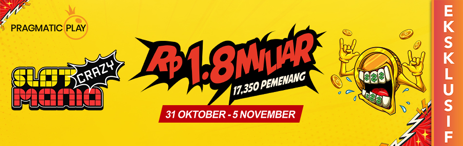 Crazy SLOT MANIA oleh Pragmatic Play akan berlangsung dari 31 Oktober 2025 00:00 WIB hingga 05 November 2025 23:59 WIB. Total hadiah senilai RP 1,800,000,000 dan akan dibagikan kepada 17,350 pemain teratas yang memiliki skor tertinggi pada papan peringkat.